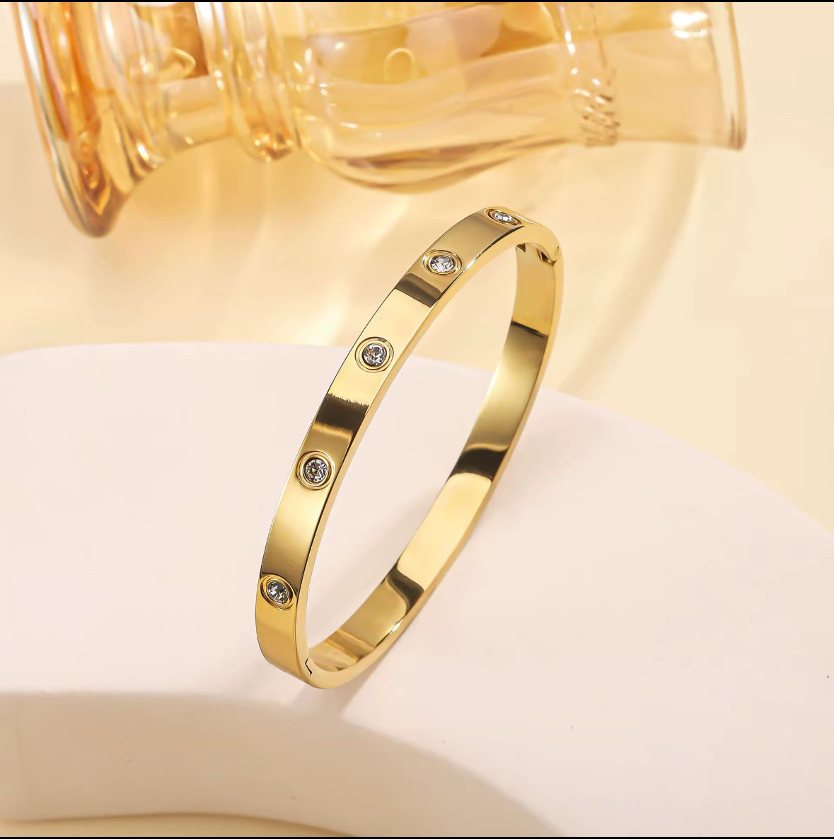 Elevate your everyday look with our Luxury Gold Crystal Bangle, featuring a refined gold-plated finish and embedded round-cut crystals for a subtle shimmer. Designed for elegance and durability, this bangle adds sophistication to any outfit — from casual to formal.