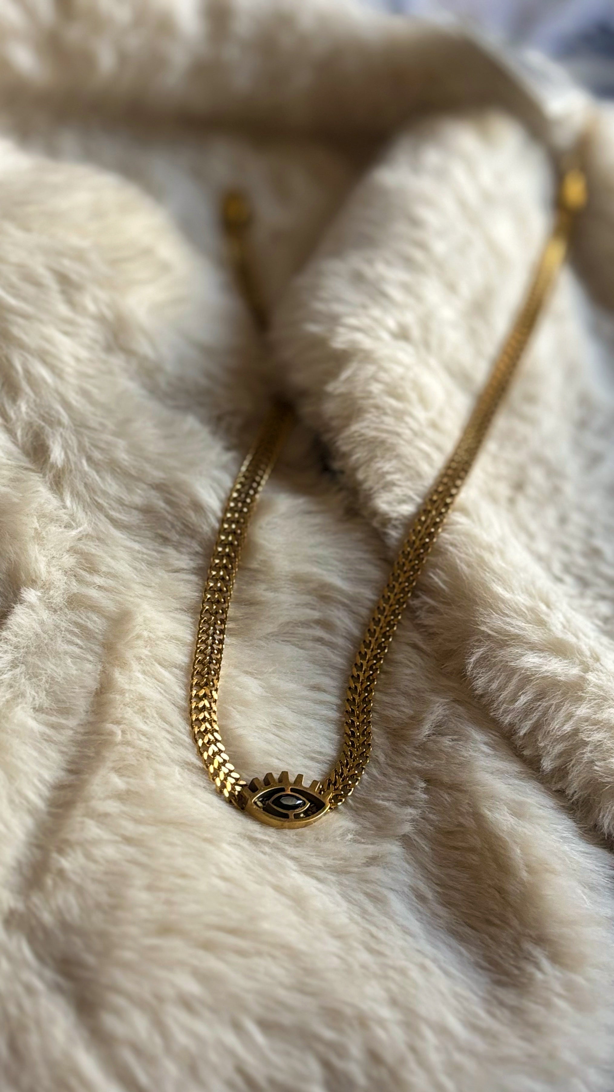 Evil Eye Gold Necklace – Bold Chain with Black Enamel Eye PendantEvil Eye Gold Necklace – Bold Chain with Black Enamel Eye Pendant